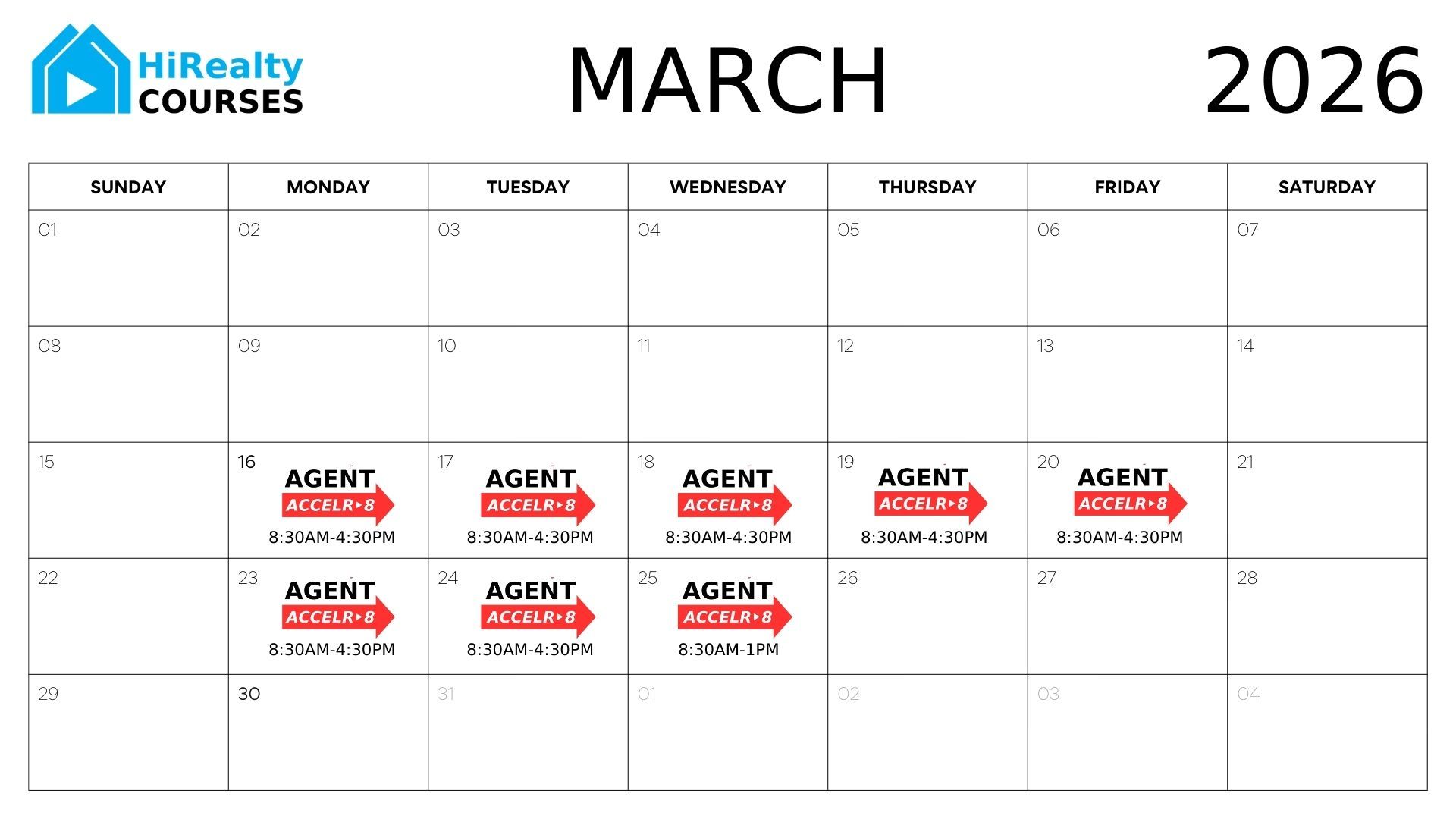 Join us at HiRealty's AGENT ACCELR-8 and fast-track your real estate career with confidence and expertise in just 8 days!